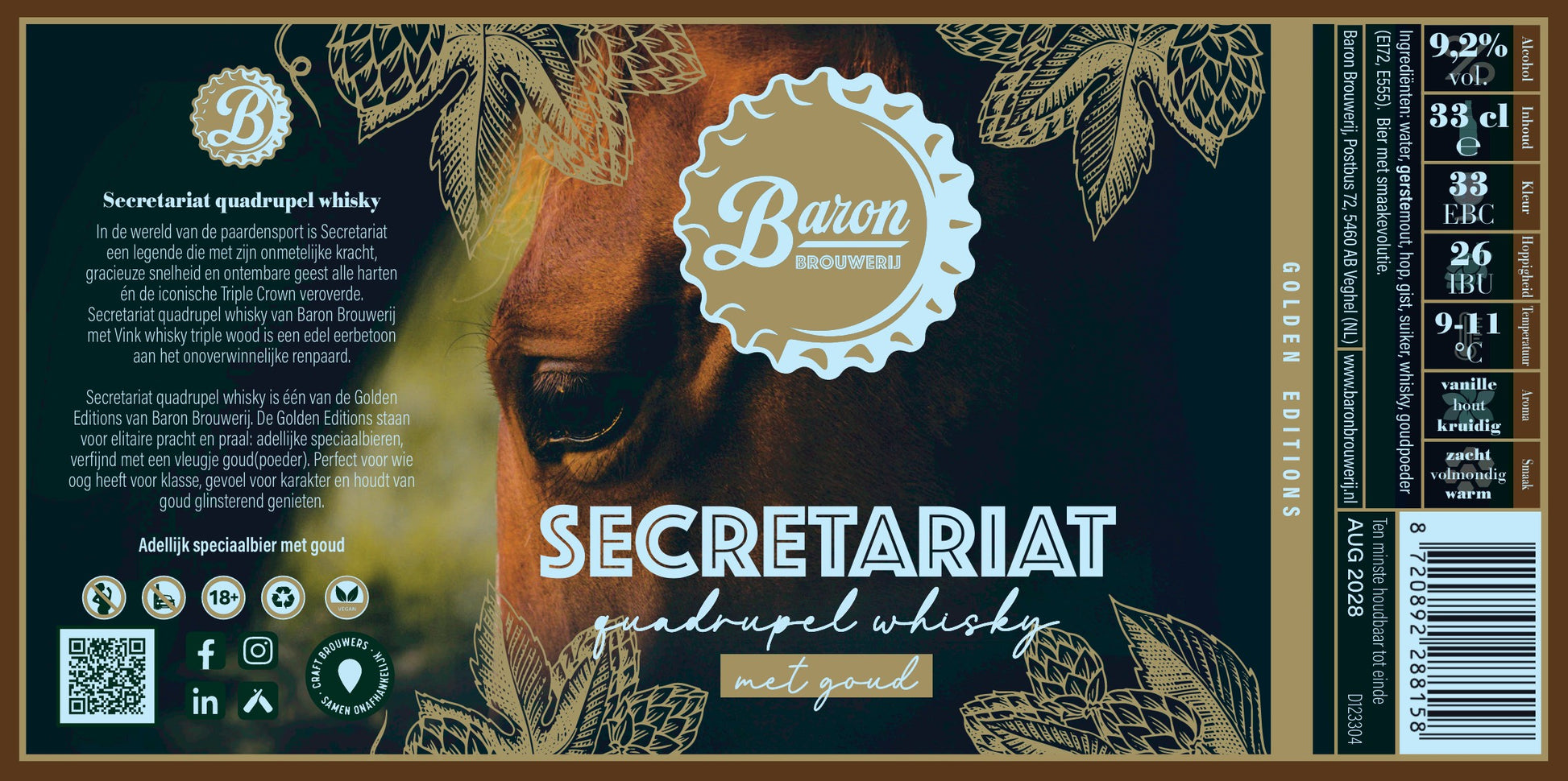 Secretariat quadrupel whisky van Baron Brouwerij met Vink whisky triple wood is een edel eerbetoon aan het onoverwinnelijke renpaard.